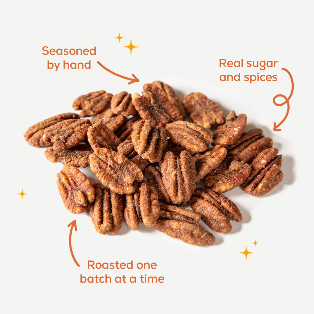 We love food. And we believe you should feel good about what you eat. Our high-quality nuts are sourced from farms in California and Texas and are hand seasoned with with simple and flavorful ingredients. Thoughtfully balanced spices, real sugar, and protein-rich nuts make these a treat you can enjoy everyday!